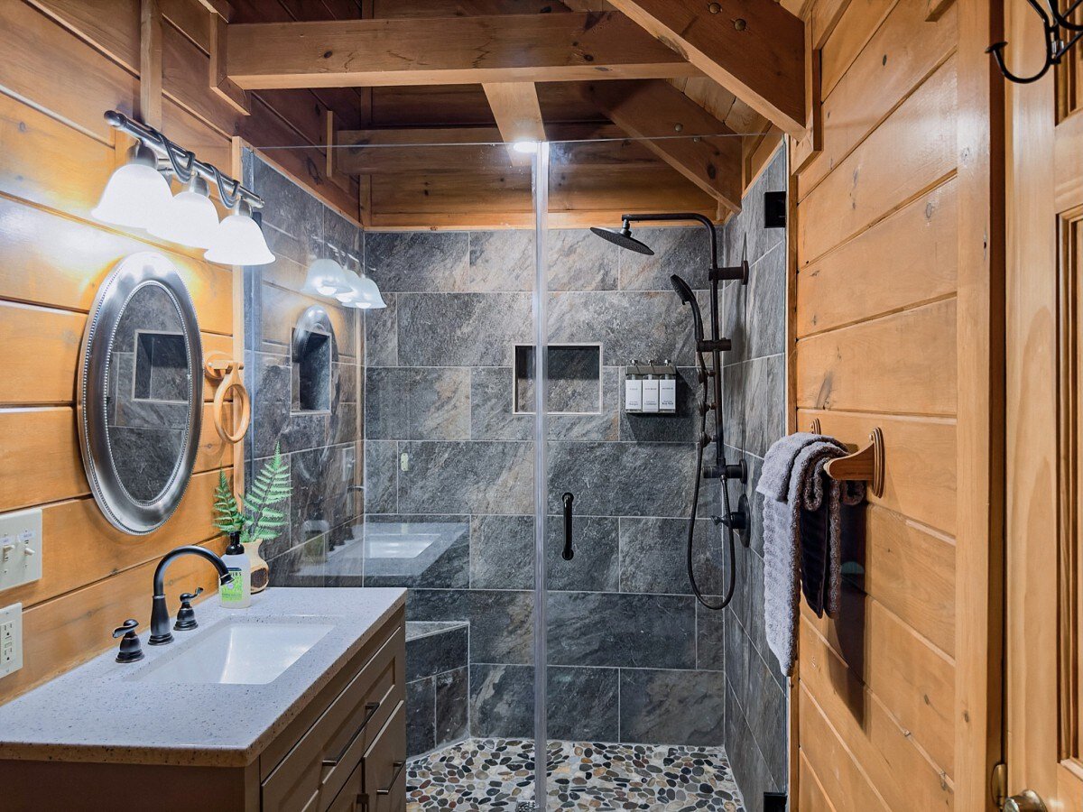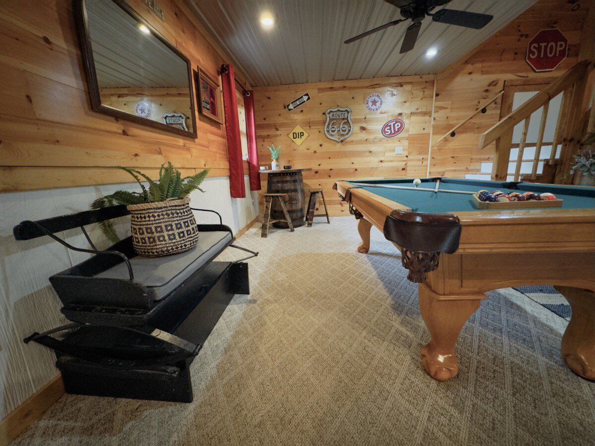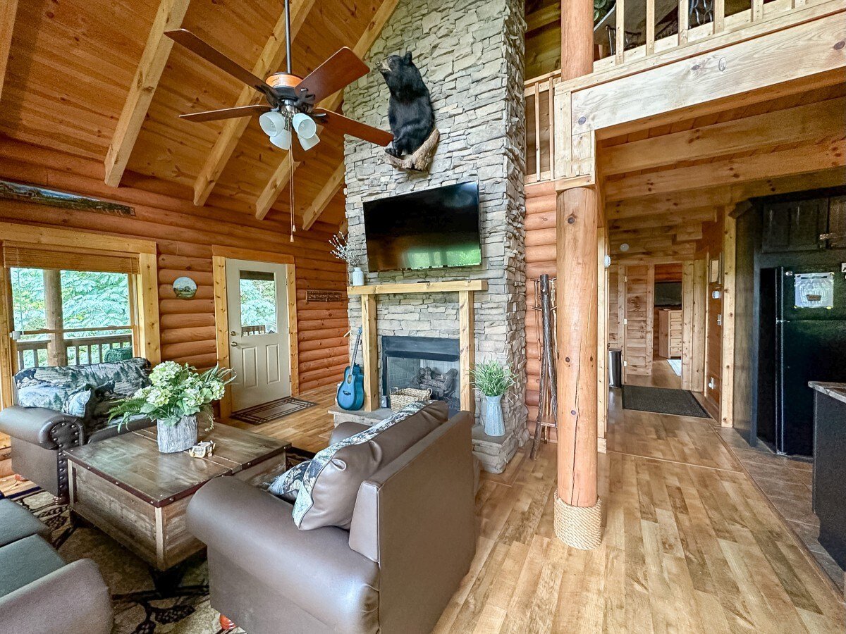Rustic. Modern. Secluded. Authentic Log Cabin in the Sevierville countryside. Close to all the action but private, secluded, and easy to access. Beautifully decorated, fully stocked cabin with all the amenities you would need with an amazing view of Mt. Le Conte! Sleeps up to 16 comfortably with plenty of indoor and outdoor covered living spaces to spread out. Amenities include hot tub, game room with pool table, arcade and foosball, and a master suite with a spa shower system.