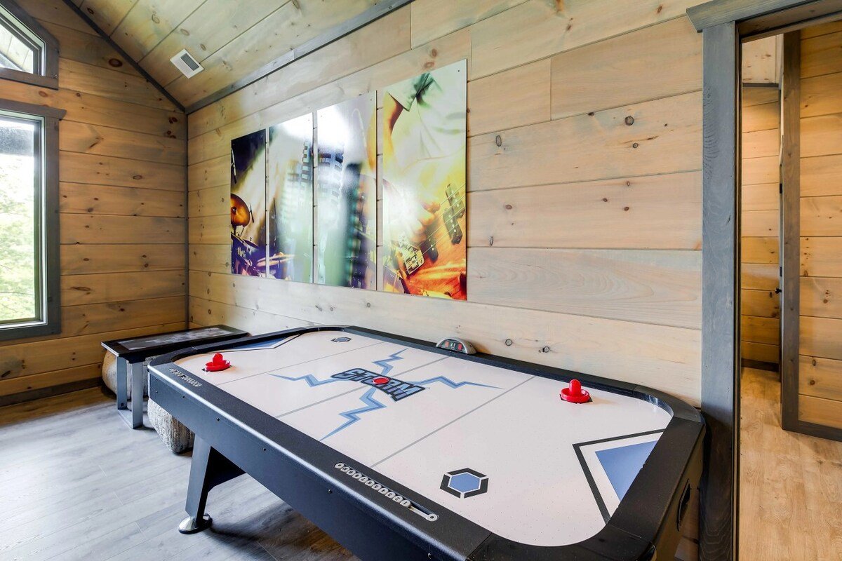 Experience the best of Gatlinburg at 'Bluegrass On The Hill,' a stunning 3-bedroom, 3.5-bathroom vacation rental! The Cobbly Nob Resort cabin offers guests access to 3 outdoor pools and a great location near Bent Creek Golf Course. Travelers of all ages can enjoy the private indoor pool, hot tub, game room, and panoramic mountain views from the balconies. Hit the scenic trails at Great Smoky Mountain National Park, then unwind with a bluegrass jam session in the music room.