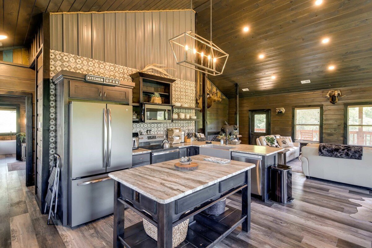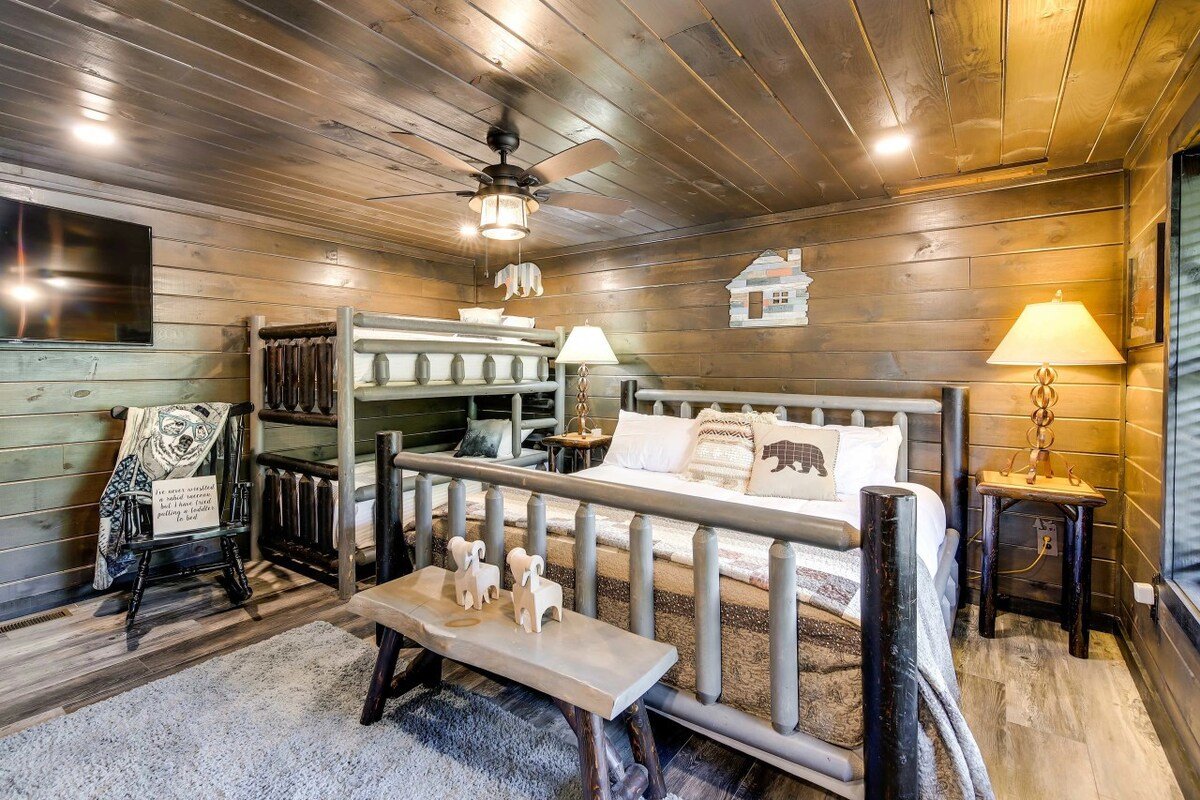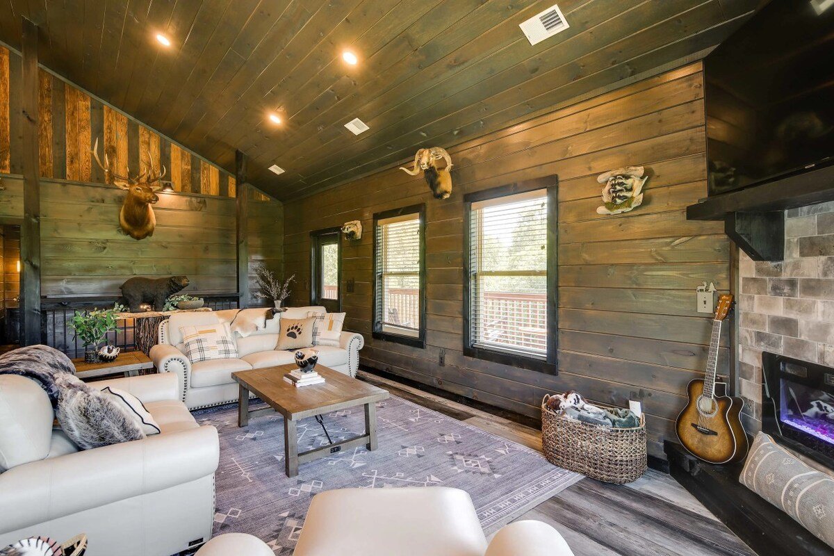Upscale Cabin w Hot Tub, Theater/Game Rm, Firepit!
