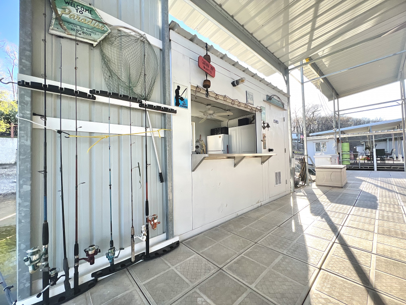 But that's just the beginning. The real magic happens outdoors, where your private dock awaits. Imagine spending your days fishing, swimming, or simply soaking up the sun while lounging on the dock. Need a break from the water? No problem! Head over to the cabana on the dock and whip up a refreshing beverage to enjoy as you take in the breathtaking views.