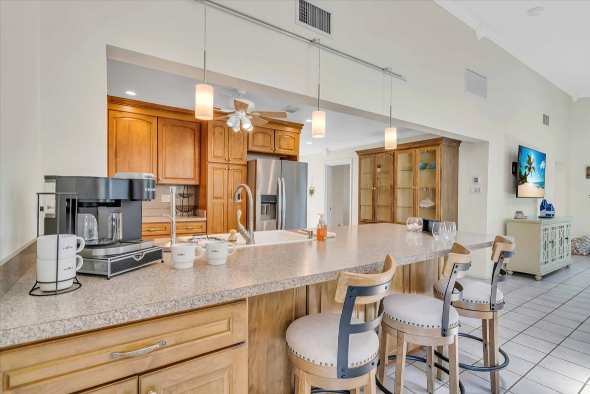 Step inside to find a spacious and perfectly furnished living area, ideal for relaxation and entertainment. The well-equipped kitchen boasts modern appliances and plenty of counter space, perfect for preparing delicious meals. The outdoor oasis is where the Nokomis Pearl truly shines. The outdoor oasis area may be shared with other guests at the house. Enjoy the beautiful pool and jacuzzi, surrounded by a large pool deck with room for grilling, games, dining, or lounging in the sun, providing a private sanctuary for your leisure. Whether you're lounging by the pool, soaking in the Jacuzzi, or dining al fresco on the patio, every moment here is pure bliss. Both bedrooms are thoughtfully designed to offer a restful haven, featuring comfortable beds and ample storage space. The two bathrooms are tastefully appointed, ensuring convenience and comfort for all guests.