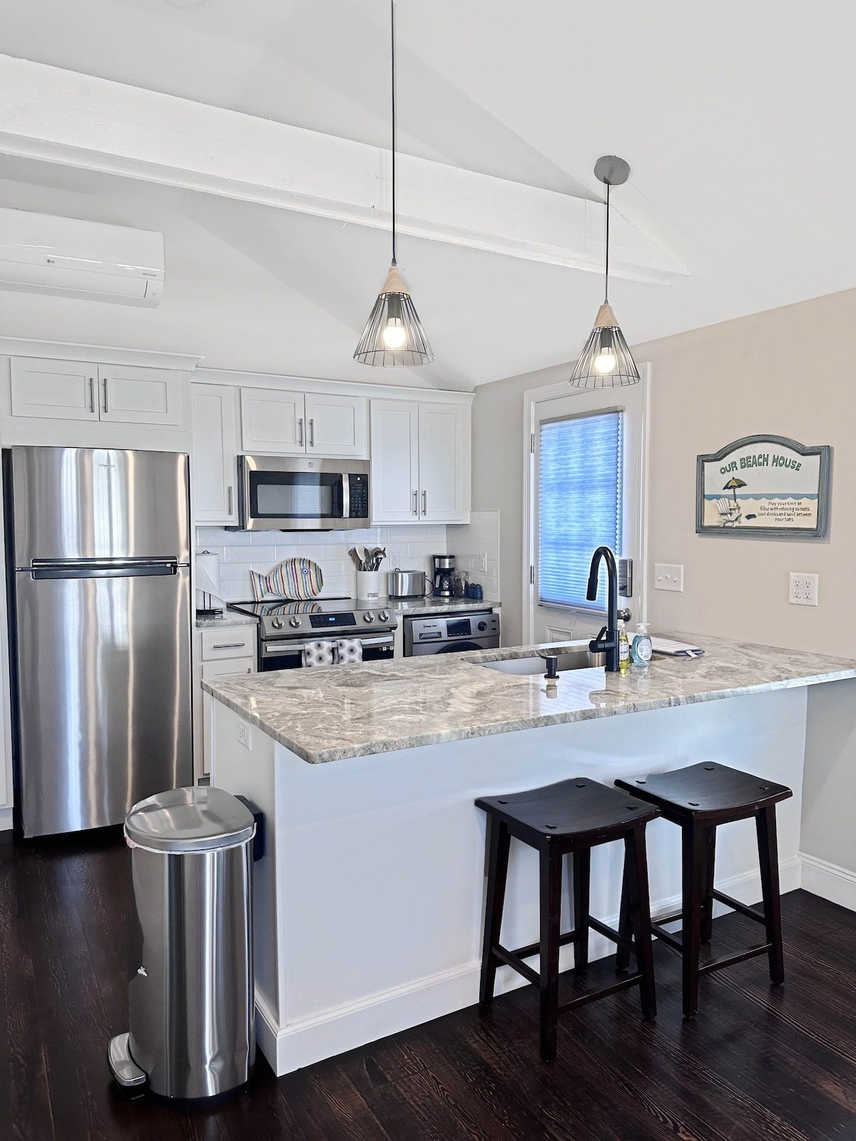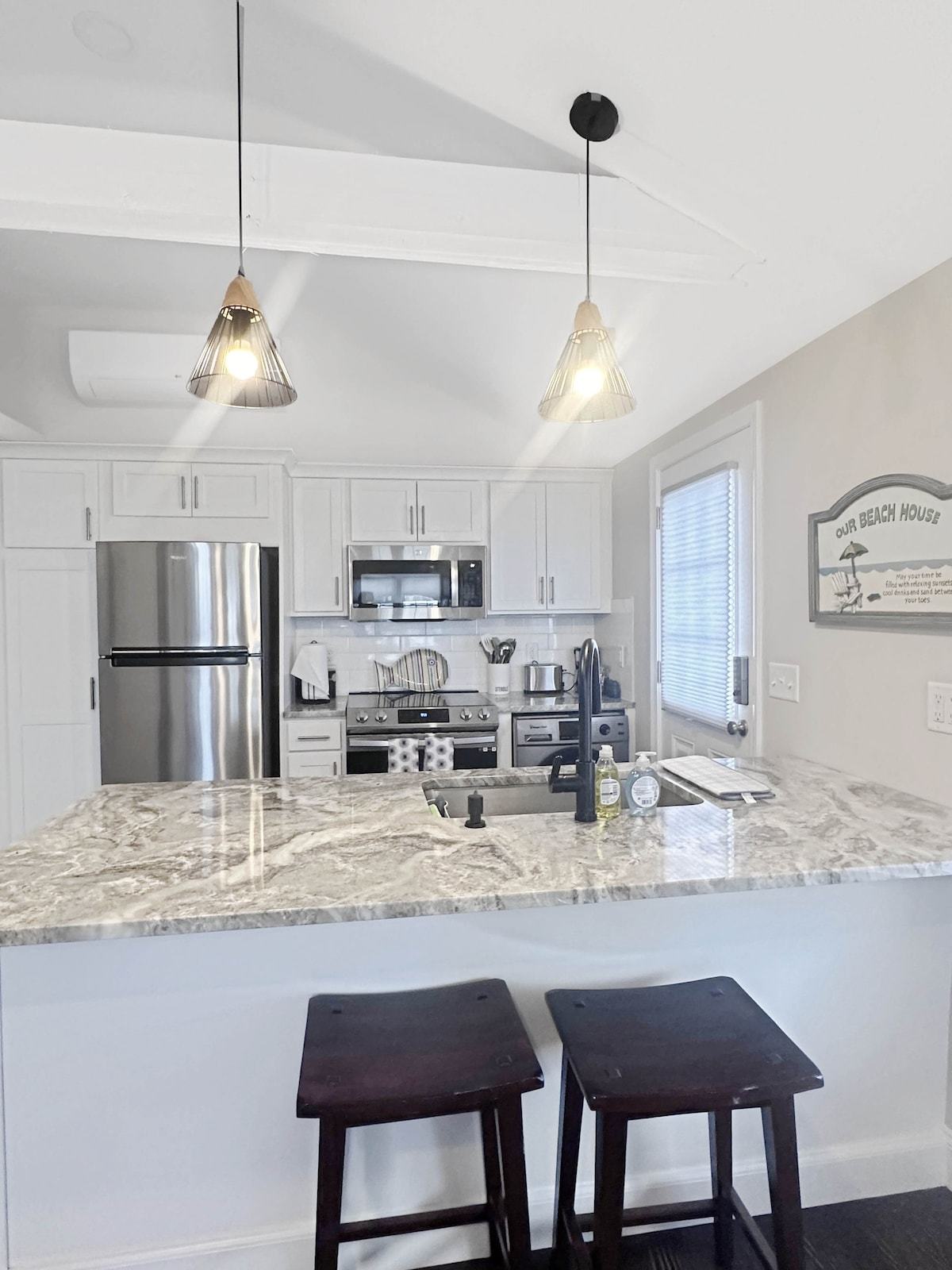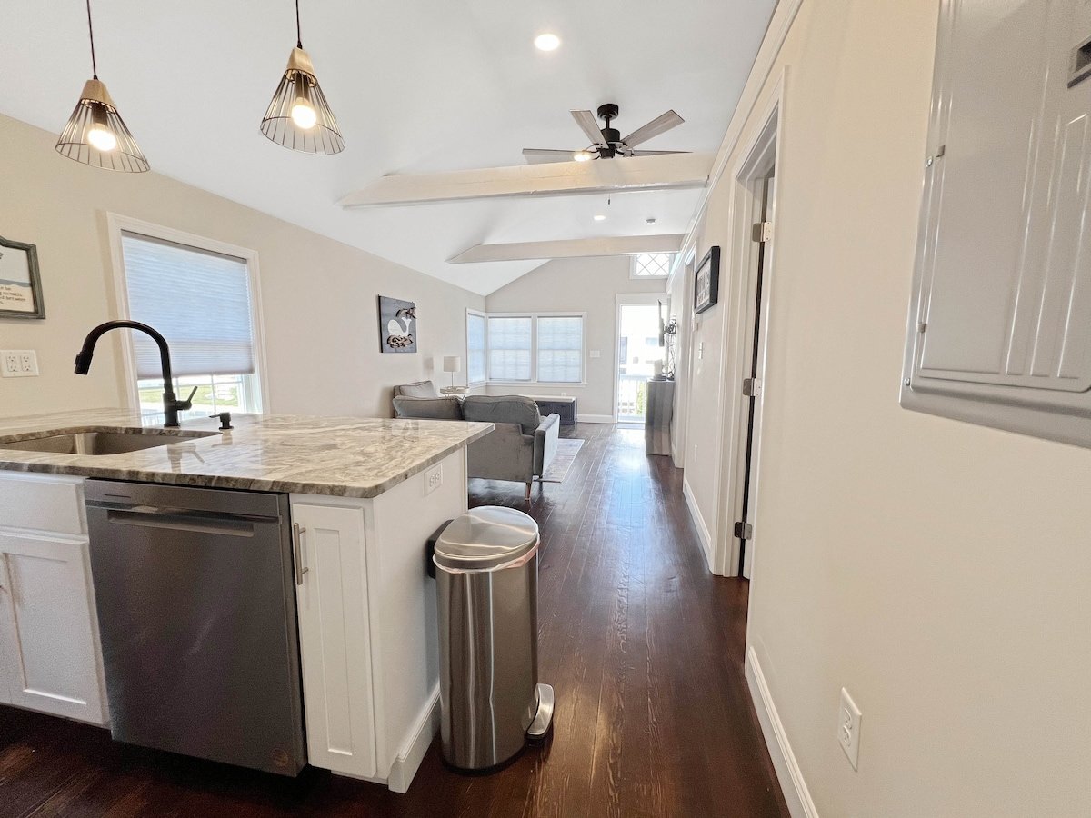 Book your beach vacation at the Kentview Beach House. This beautifully remodeled single-family house, just steps away from Hampton Beach is waiting for you to stay! This house comfortably sleeps 5 people, has two parking spots in the driveway, and plenty of room to enjoy your vacation at the beach. The house has a full kitchen including a dishwasher and a washer/dryer unit for your convenience. We want to make your beach experience comfortable - book today!