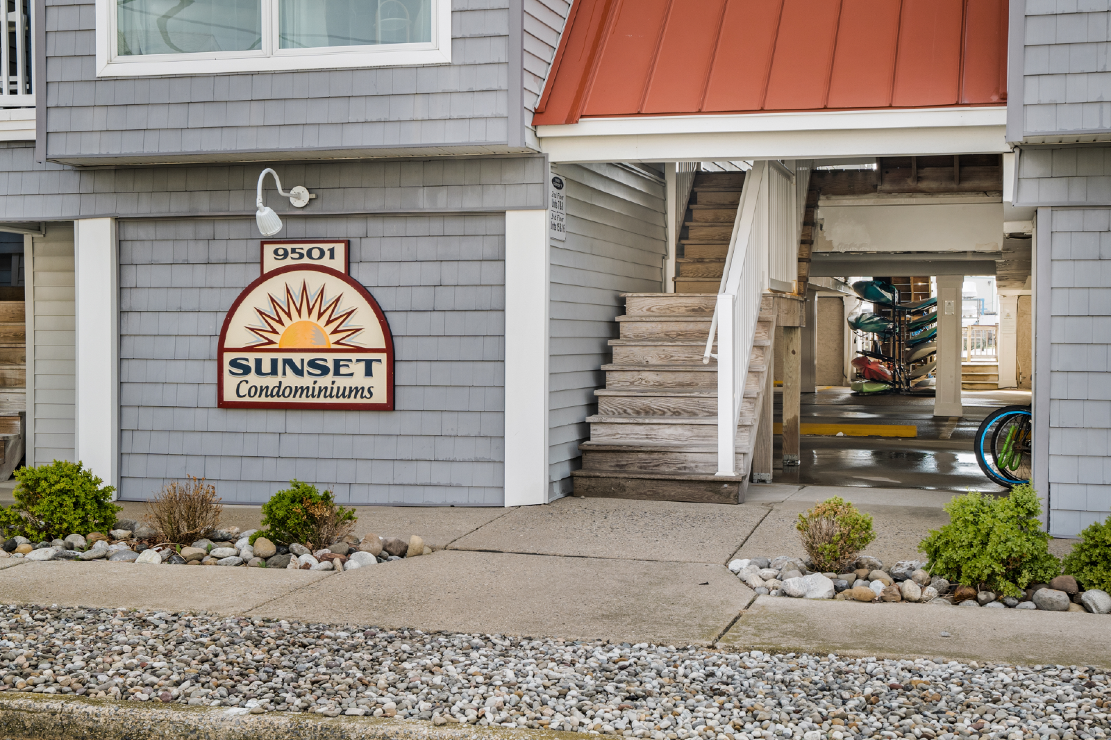 Enter into the open living area, with a kitchen, dedicated dining area, and family room with a small Smart TV. The main bedroom features a brand new King bed, with a full ensuite bathroom. The second bedroom has two brand new twin beds. There is a full hall bathroom (with shower / tub combo) and washer + dryer. Finally, a small semi-private sitting area outside the front door will make your stay comfortable. Park your car in the dedicated off-street space, and walk to EVERYTHING Stone Harbor has to offer…including the beach, Stone Harbor’s shops and dining, several playgrounds, an arcade, The Reeds, Springers, family-friendly activities, and more! Enjoy Central Air, WiFi, 2 beach tags, beach chairs and a beach cart.
