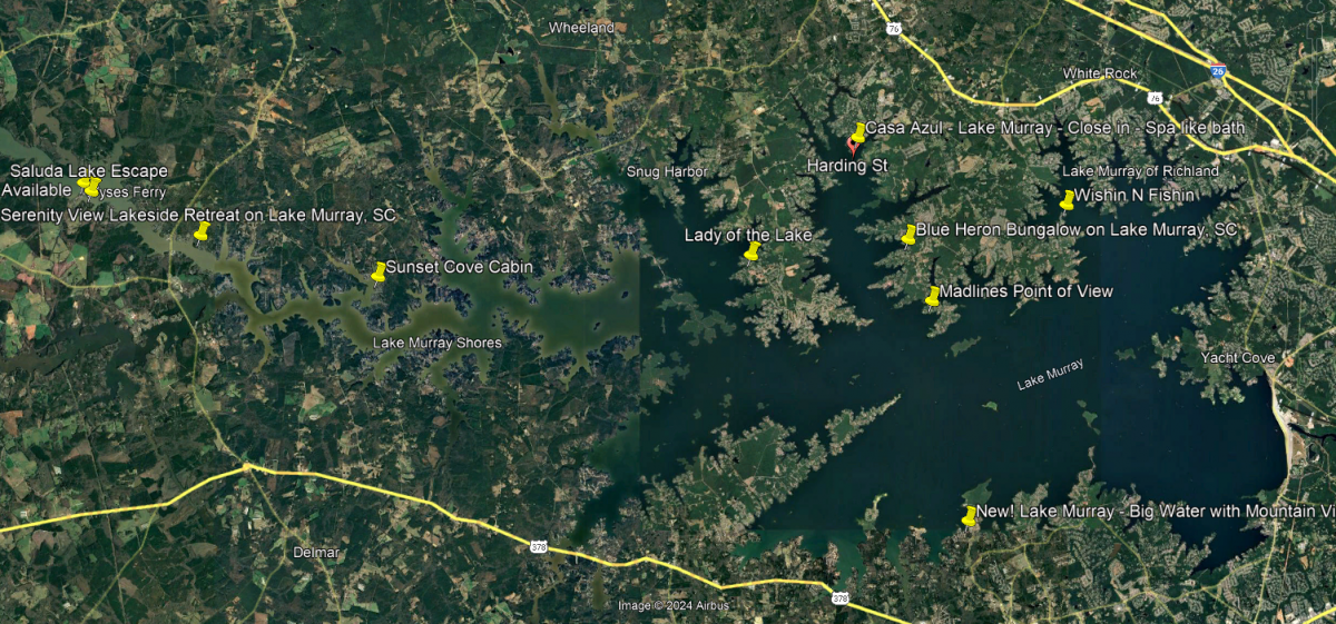 Step outside and be mesmerized by the breathtaking natural beauty of Lake Murray. Enjoy stunning lake views from various vantage points and partake in various water activities, including boating, fishing, kayaking, sailing, skiing, swimming, and tubing – all permitted, promising an unforgettable lakeside retreat. Whether you bring your watercraft and toys or opt for online rentals, the options are limitless. There is a dock located on the property, the owner keeps his boat on one side but the other is available for your boat. The summer water level is typically 9.5’ in front of the dock, while the winter water level is around 5’.