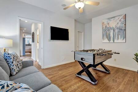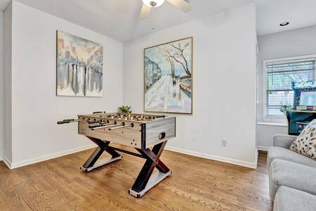 Make some memories at this distinctive and welcoming location in Memphis. It's the ideal getaway location for you and your family. three bedrooms, three bathrooms, and a jacuzzi tub, all elegantly decorated, sparkling, and fashionable. Spend time in the game room as well, which has a football table and an arcade with Street-fighter standup games. It is only a few blocks away from pubs, cafes, restaurants, and a wide variety of other leisure and entertainment options.