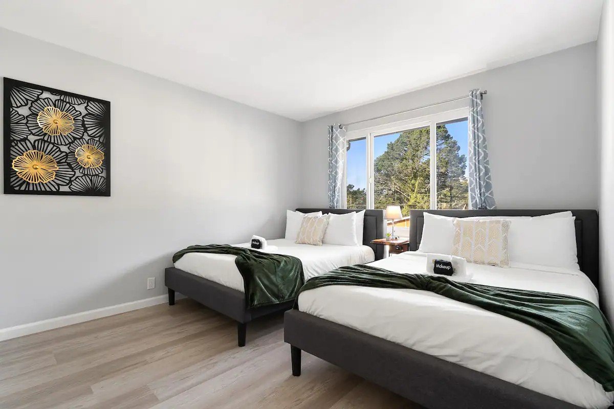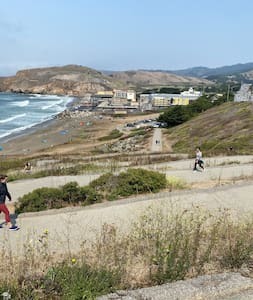 Our beautiful home is located in Pacifica which is known for beautiful coastline, breathtaking vistas, rocky bluffs and miles of sandy beaches. This listing is a locked private room with 2 full size beds and shared bathroom in a co living house. The house is located on nearby beaches good for vacation with your family and friends. The house also comes with shared kitchen where in you can cook and relax outside in our back yard. Very good and safe house for travel and long term work stays.