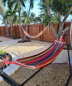 Your best vacation awaits you at our spacious and serene beach getaway! Hammocks rock you to sleep under shaded palms. Romantic dinners on the large, new deck! Wide-open spaces, new, comfy furniture new beds with luxurious all-cotton linens. Our well-stocked kitchen inspires every style of cooking. Pick your favorite spot in our very private garden! Adjacent to the most pristine beaches of the Palm Beaches! and to downtown Lake Worth’s many shops and eateries. Welcome home!